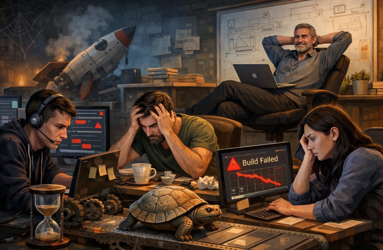 Now he’s in back-to-back meetings explaining why the team can’t ship fast enough.